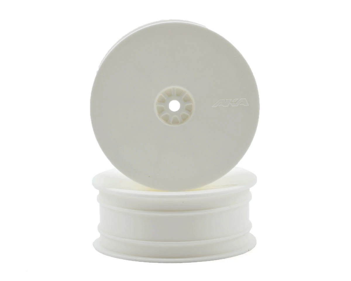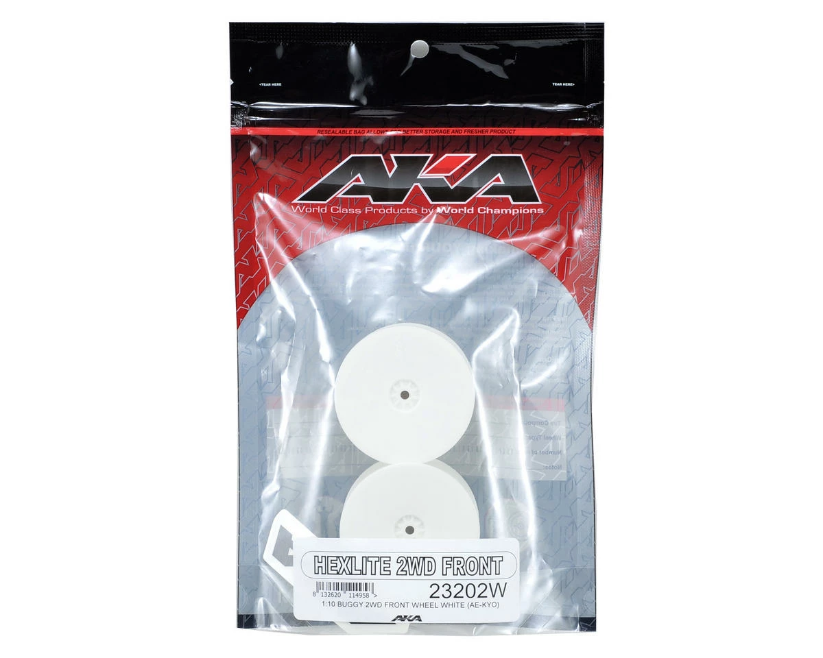 This is a set of two AKA Racing “HEXlite” 2.2 12mm Hex Front Wheels, and are intended for use with Associated and Kyosho 2wd buggies that use a 12mm hex front wheel. How do you reinvent the wheel? Make it lighter and more durable! AKA HEXlite 1/10 buggy wheels were designed with two things in mind, weight and durability. Both were achieved through superior engineering and use of AKA’s proprietary high-impact nylon. This combination makes them one of the lightest hex wheels on the market. Plus, HEXlite wheels spin true and balanced thanks to the “made in the U.S.A” quality craftsmanship. Also, a revolutionary feature to the 1/10 market is the optional wheel stiffener insert (Not Included). It has been designed to stiffen the already stiff wheel, as well as help prevent dirt from building up inside the wheel, which will cause the wheel to go out of balance.