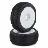 This is a set of two AKA Racing Crossbrace 1/8 Buggy Tires. These tires include AKA Red inserts. The CROSSBRACE is not your traditional looking buggy tire. This is another tire in the AKA line that works well at most tracks. The Cross Brace really stands out in loose to loamy track conditions. With the larger square pins and center bars you can expect this tire to deliver the power to the ground