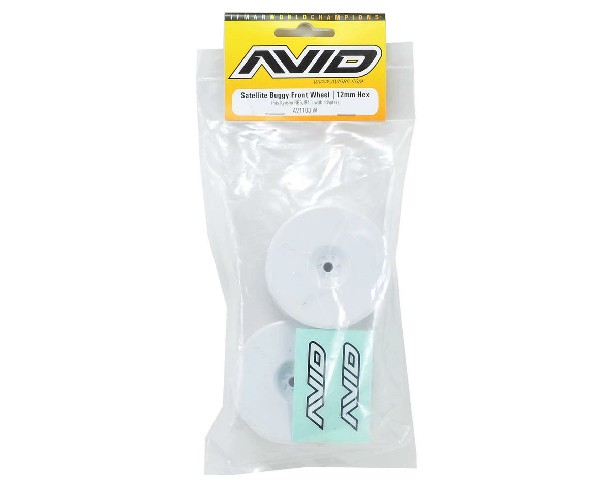 This is a pair of Avid RC 12mm Hex Satellite 2.2″ Front Buggy Wheels. These wheels fit the front of the Kyosho RB5, RB6 and the Team Associated B4 and B4.1 buggies equipped with 12mm hex adapters (AVD1002-SET). Buggy racers around the world will appreciate the engineering, looks, and performance of the Satellite buggy wheel lineup from Avid.