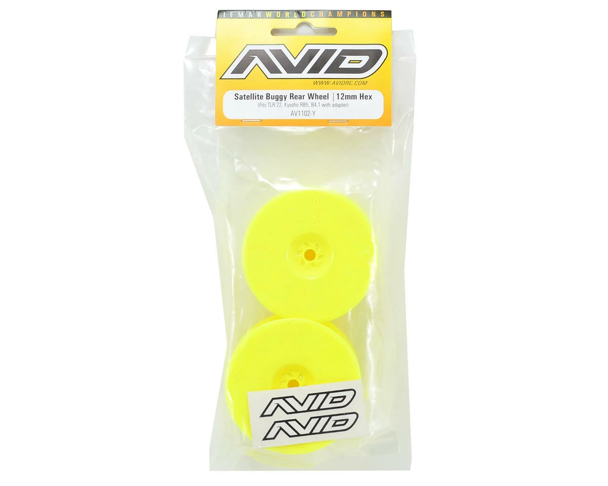This is a pair of Avid RC 12mm Hex Satellite 2.2″ Rear Buggy Wheels. These wheels fit the rear of the Team Losi Racing 22, Kyosho RB5 and RB6 and the Team Associated B44.1 and B4.1 equipped with 12mm hex adapters (AVD1002-SET). Buggy racers around the world will appreciate the engineering, looks, and performance of the Satellite buggy wheel lineup from Avid.