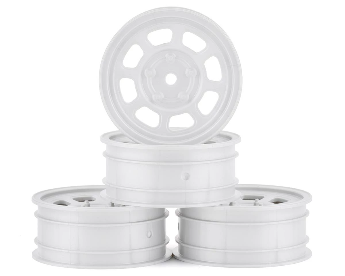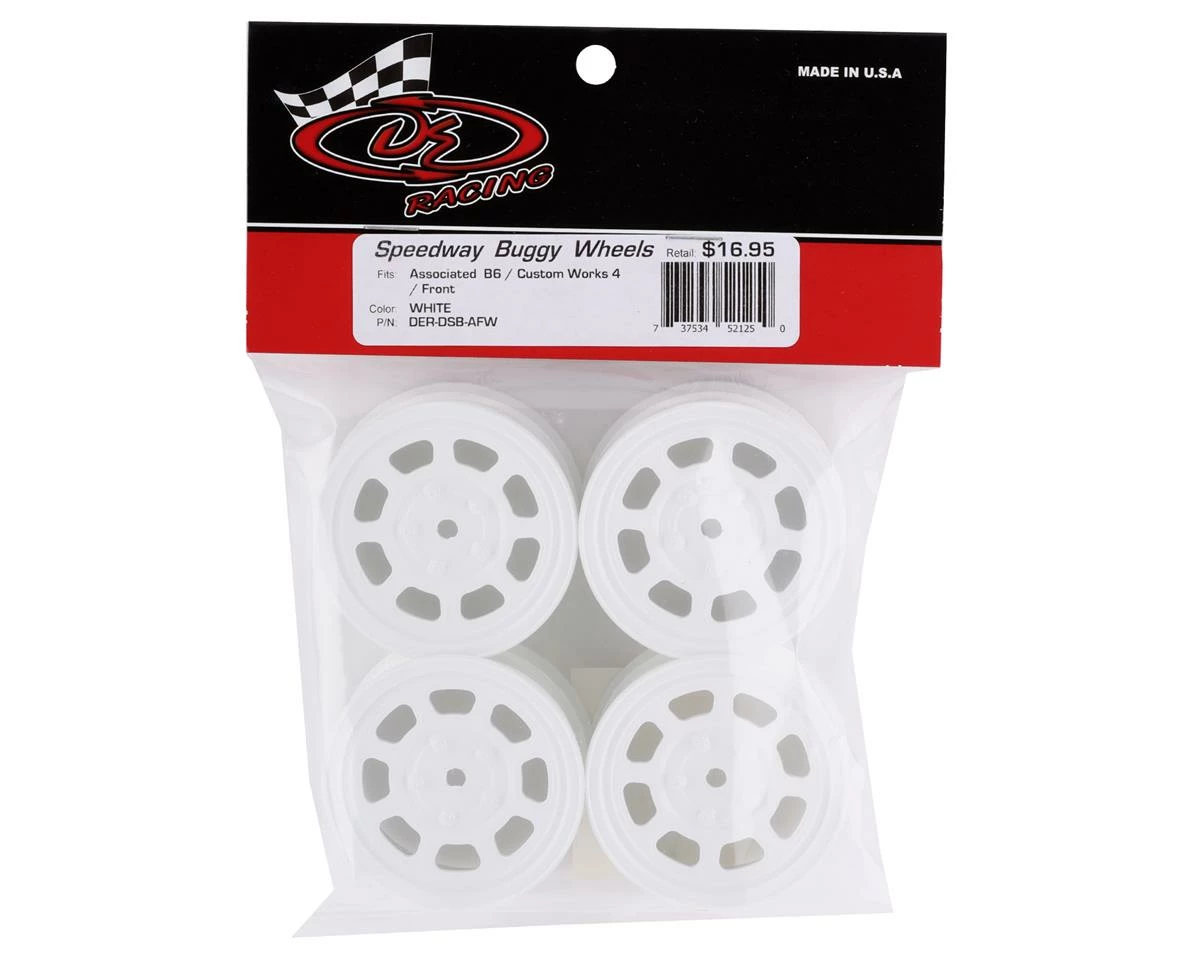 DE Racing Speedway Front Wheels are a great way to help keep your oval car rubber side down. These wheels offer a classic oval look, are available in black, white, or silver color options, and fit Associated B6 or Custom Works Outlaw 4/Rocket 4 applications. Package includes four wheels.