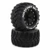 Duratrax 2.8″ diameter stadium truck tires are available mounted in your choice of black or chrome 6-spoke rims. All are sold in pairs and include foam inserts.