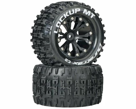 Duratrax 2.8″ diameter stadium truck tires are available mounted in your choice of black or chrome 6-spoke rims. All are sold in pairs and include foam inserts.