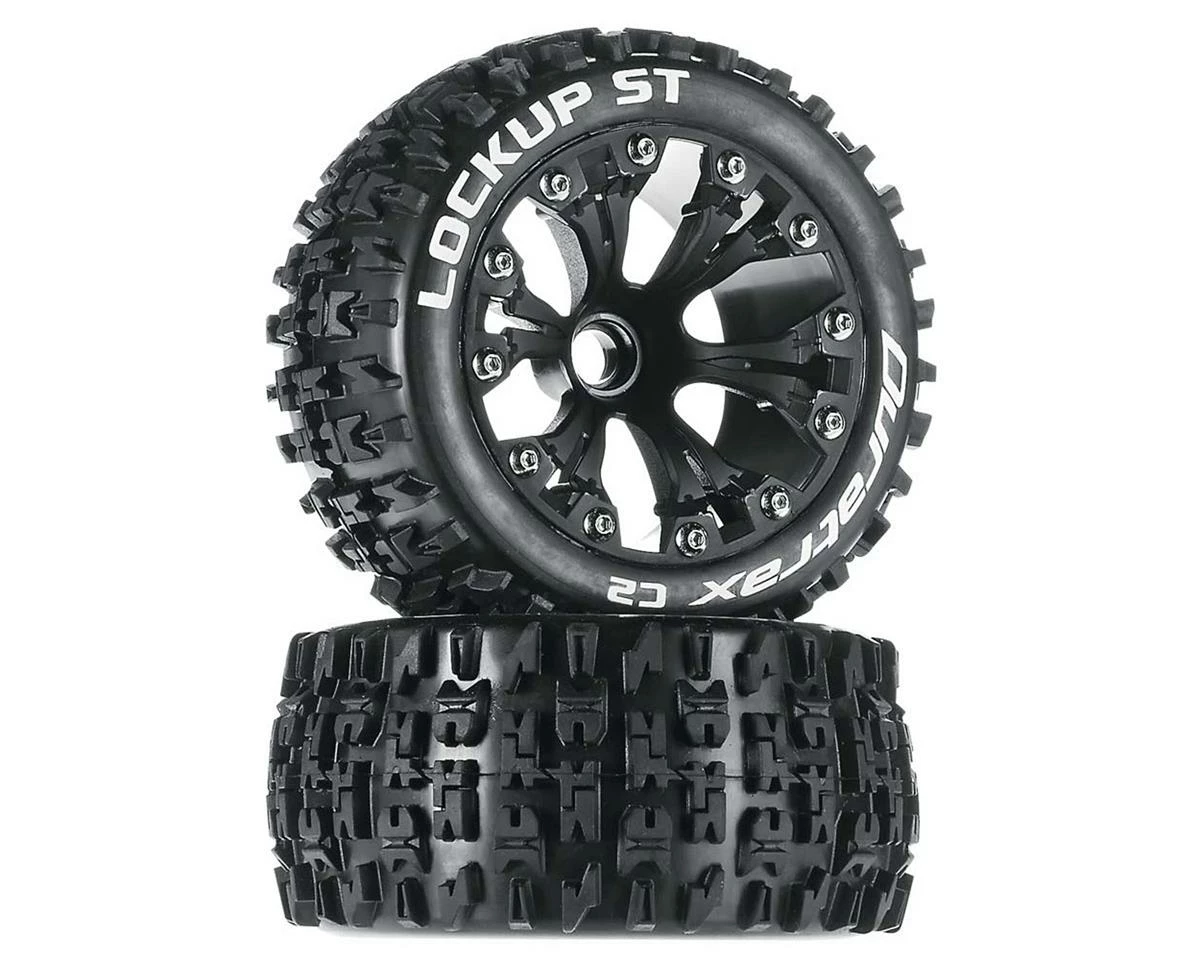 This is a set of two Duratrax Lockup ST 2.8″ Black 2WD Mounted Front Tires.