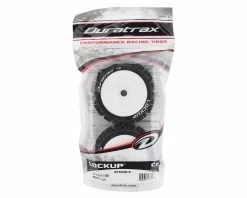 This is a set of two DuraTrax Pre-Mounted Lockup 1/8 Buggy Tires in C2 compound. These tires are recommended for loose and wet track conditions, as well as grass tracks. DuraTrax Performance Tires deliver top-end traction and durable construction so you can keep running laps, long after your competition has limped to the pits. DuraTrax wheels feature a unique “star” pattern hub that grips the nut better than traditional styles.
