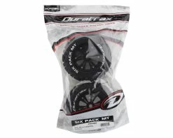 This is a set of Six Pack MT 3.8″ Pre-Mounted Monster Truck Tires. Duratrax 3.8″ diameter Monster Truck tires are mounted on split spoke black and chrome rims with a 17mm Hex. All are sold in pairs and include foam inserts.