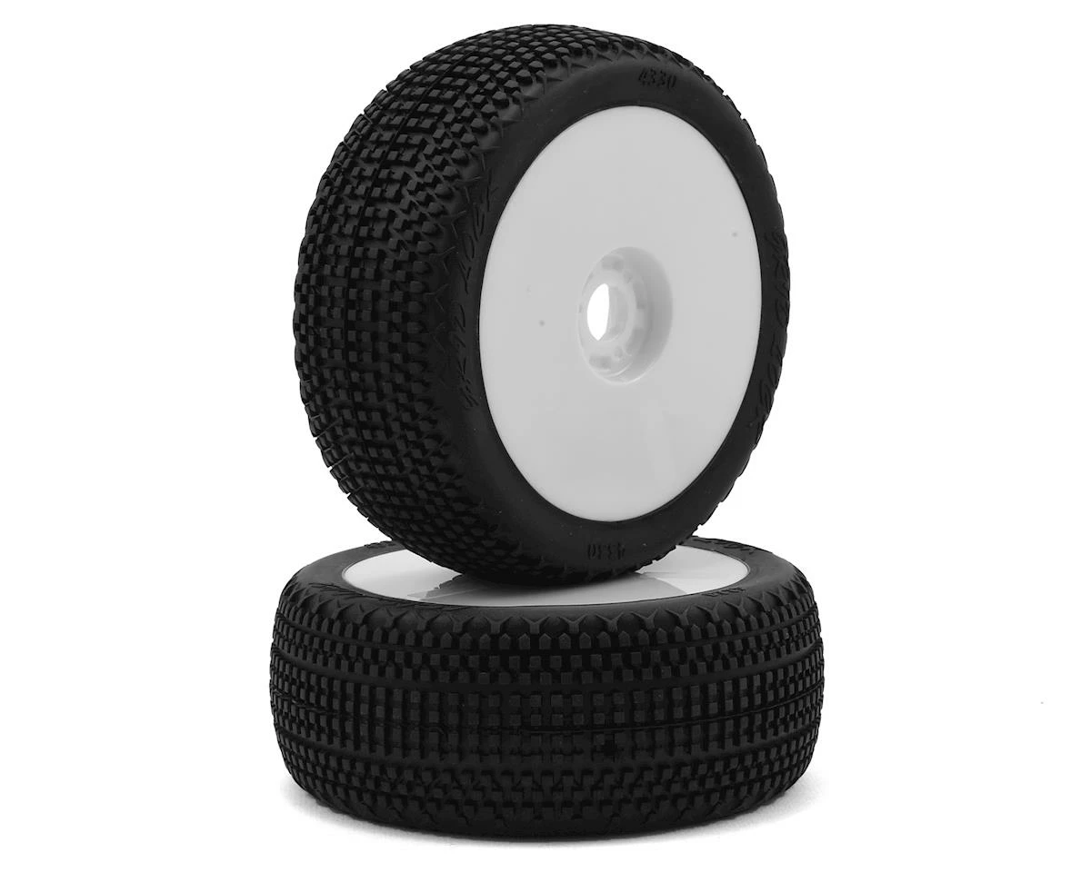 This is a pack of two HB Racing Gridlock V2 Pre-Mounted 1/8 Buggy Tires on White Dish Wheels. These tires are made from HB Pink rubber compound.