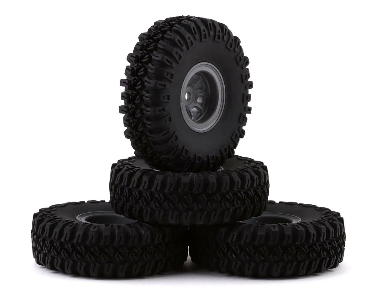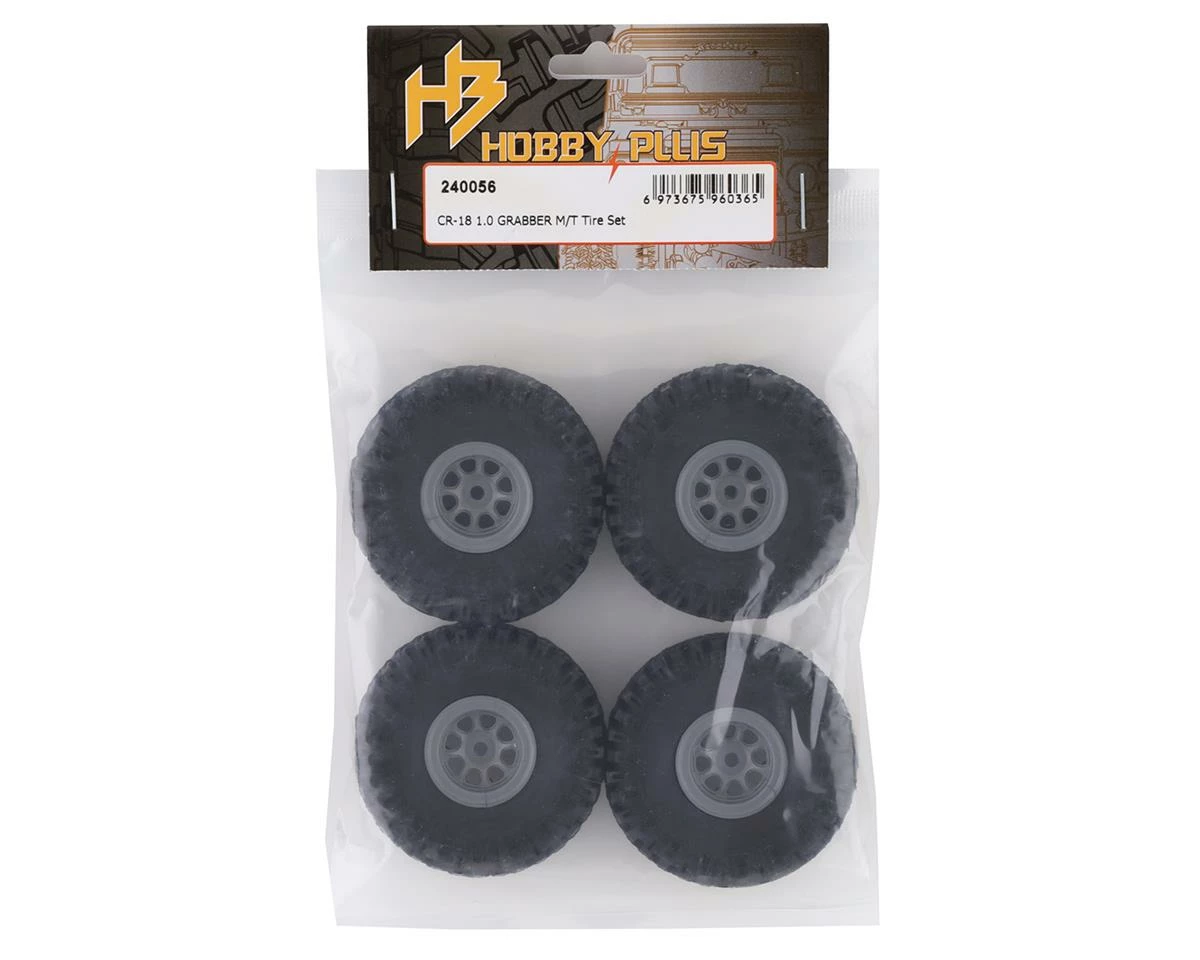 This HobbyPlus CR-18 Grey Beadlock Grabber M/T 1.0″ Pre-Mounted Tire Set is a tire set intended for use with the CR-18 Scale Mini Crawlers. These pre-mounted tires feature an approximate 2.2x.75″ profile, with an aggressive and incredibly realistic tread pattern and sidewall details. The 1.0″ beadlock wheels feature a 3-piece design with an 8 spoke D-hole pattern to complete the package. Package includes four pre-mounted tires.