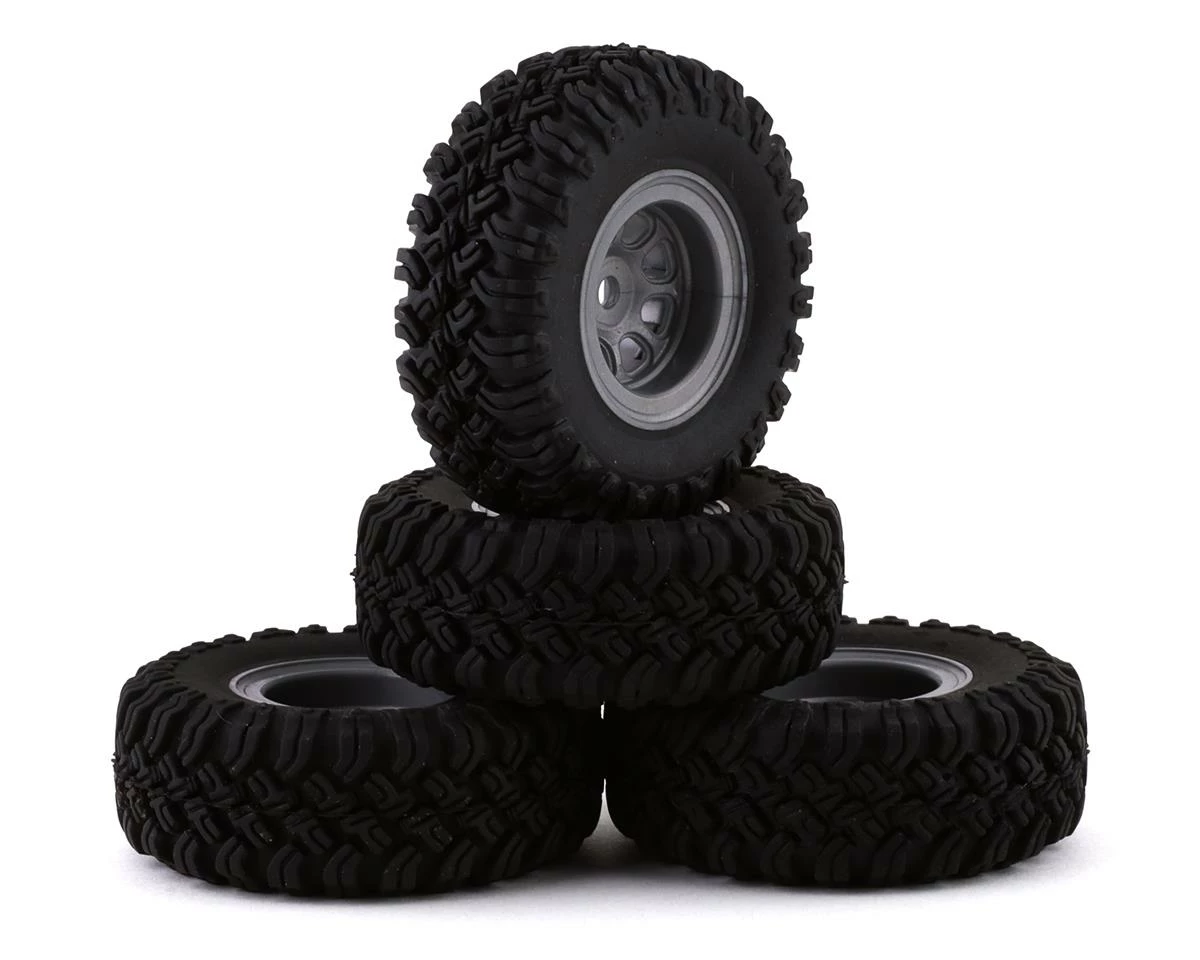 This set of four HobbyPlus CR-24 Grey Beadlock Grabber M/T 1.0″ Pre-Mounted Tires are intended for use with the CR-18 Scale Mini Crawlers. These pre-mounted tires feature an approximate 1.8x.65″ profile, with an aggressive and incredibly realistic tread pattern and sidewall details. The 1.0″ beadlock wheels feature a 3-piece design with an 8 spoke D-hole pattern to complete the package. Package includes four pre-mounted tires.