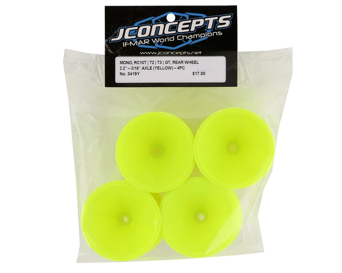 The wheels include a vent hole on the outer diameter and an outer lip to reduce the chances for glue to run down the face of the wheel during glue-up. JConcepts wheels are molded in a durable material with precise techniques to ensure dependability and performance. Mono wheels are available in bright white and fluorescent racing yellow.