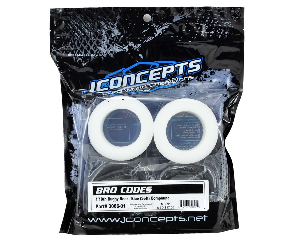 This is a set of two JConcepts Bro Codes 2.2 Rear Buggy Tires. The Bro Code has been broken at JConcepts, as the famously referenced tires have been released. The Bar Code V1 design has been a hit as being the freshest tire design seen in the last 10 years of racing development. But as always, JConcepts understands tire development and the specific details which determine performance.