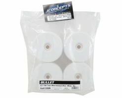This is a pack of four JConcepts Bullet 4.0″ Standard Offset 1/8 Truck Wheels. At the heart of the design is the 4.0” height bead which is has become standard for the 1/8th truck class. Leaving no detail untouched, the flat bead configuration provides elements that combine light-weight with performance. Utilizing an updated tire mounting bead, the 4.0” design eliminates the need for excess rubber and insert material, dropping overall weight, while simplifying the mounting / gluing contact patch and location. Available in bright white and fluorescent yellow the Bullet 4.0” wheel is manufactured in a durable material which is able to withstand the heavy rigors of 1/8th truck racing. The Bullet wheels also incorporate a user friendly wheel face shaped to promote a smoother gluing, wiping and drying experience.