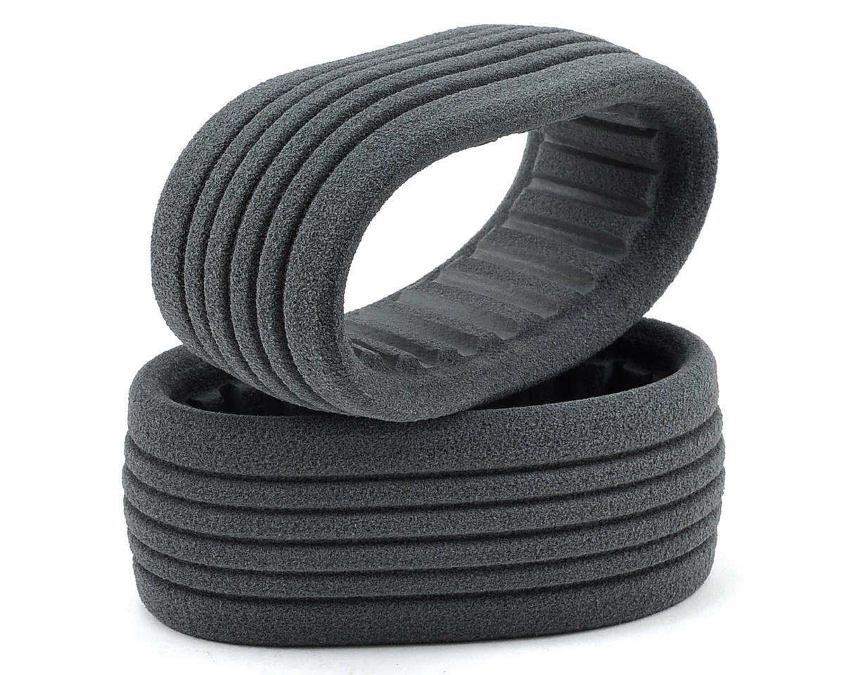 The rear inserts have alternating shallow and deep cuts on the outside which touch off against the inner carcass of the tire, providing a cushy response and feel. The inside diameter of the insert has horizontal channels cut in a 360 pattern to soak up the large impacts and help create forward bite and increase acceleration. The custom sculpted JConcepts design has been blended with a unique medium/firm density material to provide racers with a durable option that is an excellent choice for medium to extremely high-traction conditions.