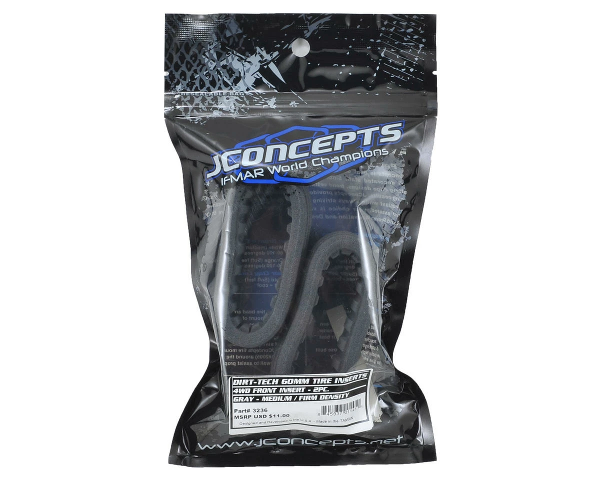 This is a pack of two JConcepts Dirt-Tech 60mm 1/10 Buggy Closed Cell Rear Tire Inserts. JConcepts has upped the ante with the Dirt-Tech 60mm closed cell insert, made specifically for the larger 60mm (2.4″) wheel and tire size. Gray in color, these inserts were developed in conjunction with tire insert guru, Brian “Dirt” Kinwald to deliver incredible performance, while at the same time providing the durability that racers demand.