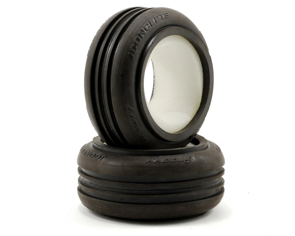This is a set of two JConcepts Groovy 1/10 2wd buggy tires. The JConcepts Groovy 2wd front tire is perfect for a variety of track surfaces. The Groovy incorporates a compact tire body with sharp 4-rib separation for precise steering input and response.
