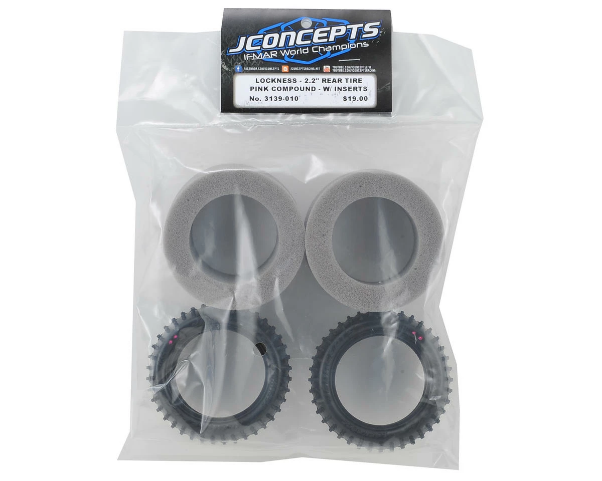 JConcepts Lockness Carpet 2.2″ Rear Buggy Tires are designed with a larger pin used more in Astroturf or grass track applications. The larger pin of the Lockness grips into deeper surfaces and produces long life with the 3D blended design of the pins and center semi-circle protrusions. Designed in the industry standard 2.2” bead mounting size, the Lockness is very versatile and has shown to work in many natural and artificial conditions.