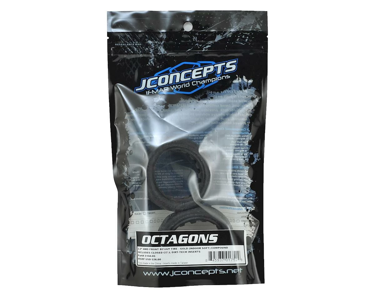 JConcepts Octagons 2.2″ 4WD Front Buggy Tires are a great choice when track conditions require a tire with less tread, but more tread than a full slick tire. The beauty of the Octagons lay just beneath the surface where JConcepts has removed a little surface area in the geometry based pattern.