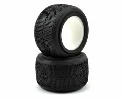 This is a set of two JConcepts Pressure Points 2.2 Rear Buggy tires. JConcepts Pressure Points are the latest low-height tread option specifically designed to tame high-speed courses with either wet or blue groove traction conditions. The design starts as an angular, low pin design as a carryover from the successful Bar Codes front tire line-up. The small “points” combined with “lower case” Y elements developed on the original Bar Codes V1 rear tire provide the ultimate in surface area “pressure” penetration and tack.
