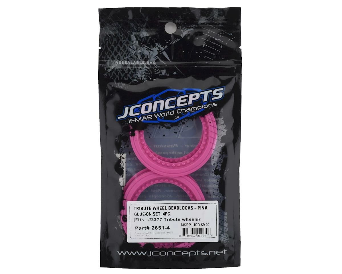 JConcepts Tribute Monster Truck Wheel Mock Beadlock Rings give you the option to add mock beadlock rings to your Tribute wheels. The injection molded, 4-piece set includes details found on today’s monster trucks and can be easily adapted to existing JConcepts Tribute wheels at a low-cost.