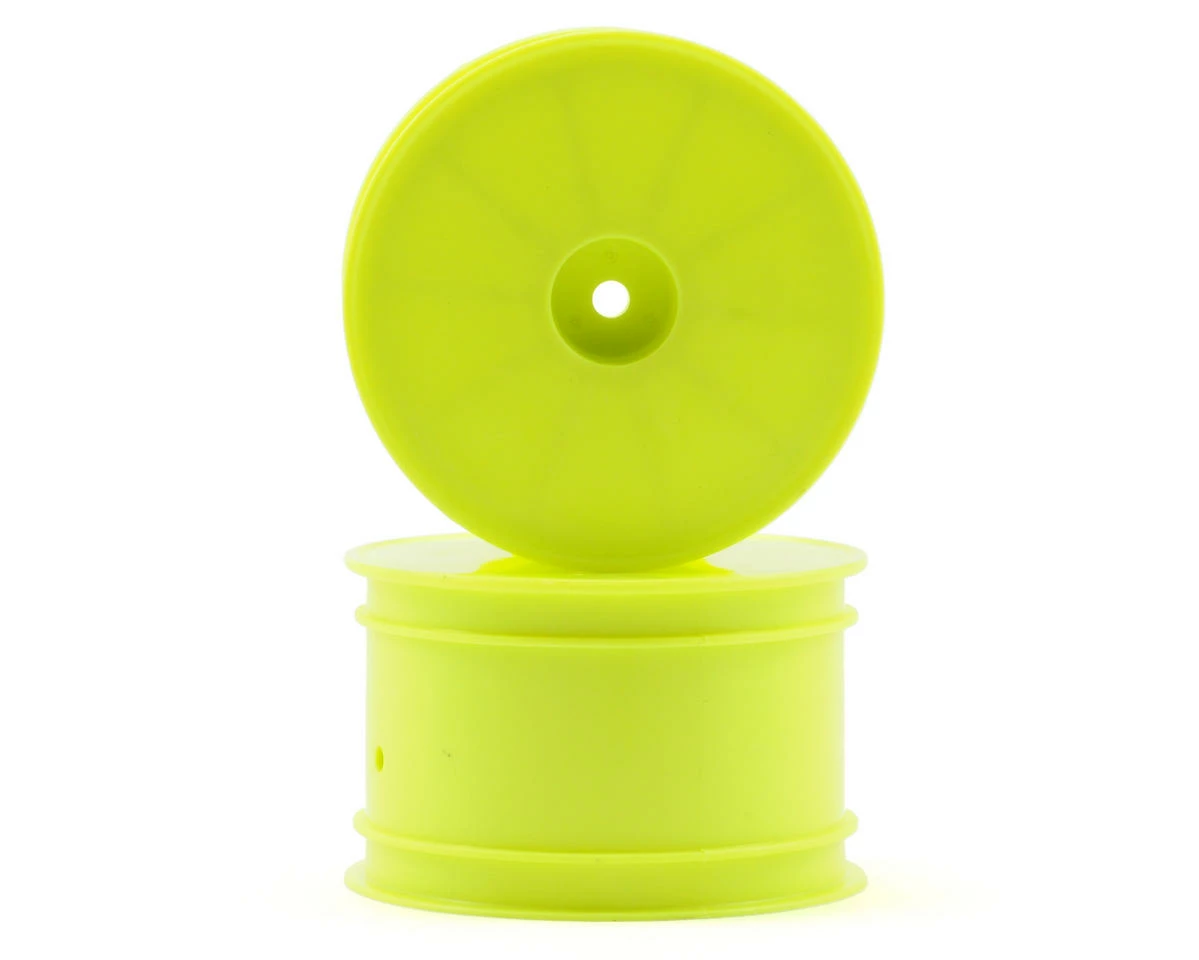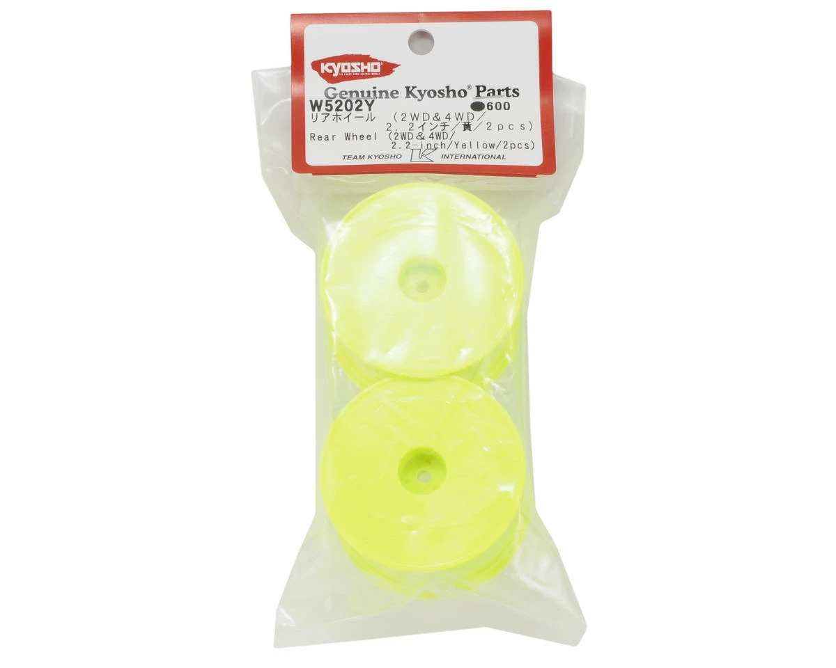 This is a pair of Yellow rear wheels for the Kyosho Lazer ZX-5 4WD buggy (all models), and Ultima RB5 SP 2WD buggy. This wheel replaces KYOW5028, and also fits the original Lazer ZX-5 and Ultima RB5 1/10 buggies.