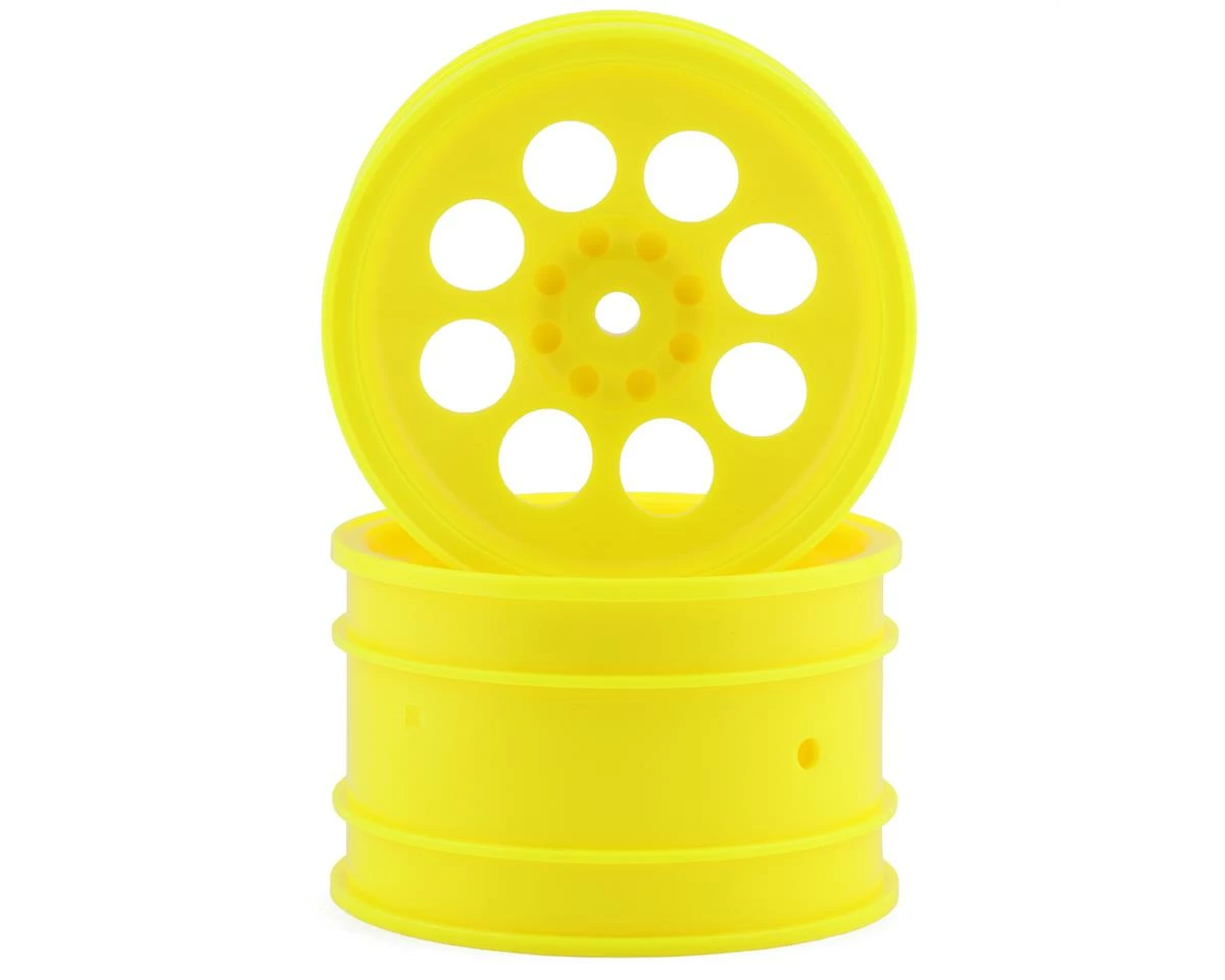 Kyosho Optima 8 Hole Wheels. These optional wheels are intended for the 2016 Kyosho Optima. Package includes two yellow wheels.