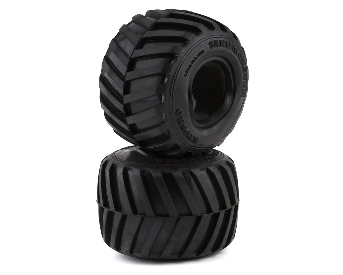 Kyosho Sand Monster Tires. These tires are a soft replacement tire intended for the Kyosho Mad Van VE and the Monster Tracker 2. Package includes two tires.