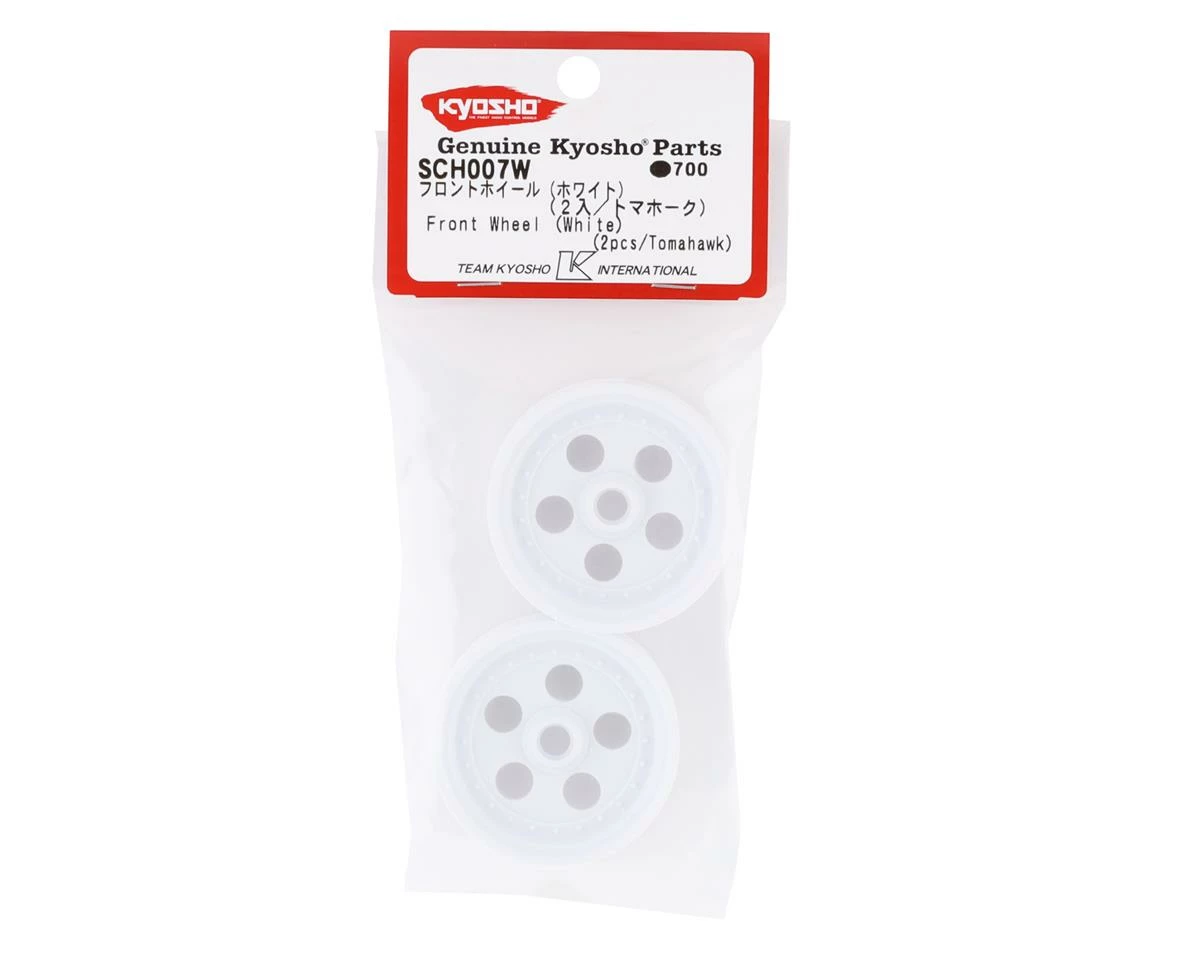 Kyosho Tomahawk Front Wheels. These optional wheels are intended for the Kyosho Tomahawk. Package includes two front wheels.