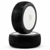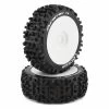 Pro-Line Buck Shot Pre-Mounted 1/8 Buggy Tires have pins that are very close in size to the amazing Hole Shot 2.0 but the Buck Shot pins are stacked closer together side to side, which provides significantly longer lasting performance. Unique to the Buck Shot are the alternating elongated bars that provide incredible forward grip! Similar to the extremely popular SwitchBlade tire, the Buck Shot is a directional tire with different tread on the outside compared to the inside, allowing you to mount the tires in the direction that suits your current track conditions. One side of the tire has standard pins, which is ideal for loose or low traction conditions where you want the tire to add side grip and improve steering. When you mount the tire the other direction, the connected side tread (Blade) reduces side traction in high-bite or edgy conditions.