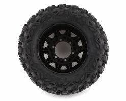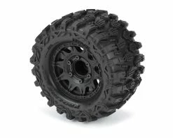 The Pro-Line Hyrax 2.8″ Pre-Mounted Tires with Raid Rear Wheels is a great option for loose or hard-packed dirt, sand, snow, street, or gravel! The Raid 2.8″ wheels feature removable hexes to allow for different offsets. Using the included narrow hex will allow for use on the rear of the Traxxas Rustler or Stampede 2WD, while the included wide hex will allow for the front of the Rustler or Stampede 2WD. The wide offset hex is also great for the front or rear of the Traxxas Rustler or Stampede 4WD. If Arrma vehicles are more your speed, you can purchase the optional 14mm hexes (PRO6347-00). Package includes two pre-mounted tires, two narrow hexes, two wide hexes and hardware.