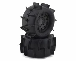 - (2) Pre-mounted Sand Paw 2.8″ Tires on Raid Black 6×30 Removable Hex Wheels