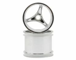 This is a set of two RPM “Talonz 3-Spoke” Front Wheels and are intended for use with 1/10 scale Traxxas Nitro trucks. RPM shreds the myth that lightweight truck wheels have to be boring! RPM has found the perfect blend of design, material, and weight to bring you the most fantastic wheels available on the market. These wheels are as light as stock dish-style wheels, yet they are stronger, much more rigid, and incomparably better looking! Our newest wheels are made from RPM’s killer blend of nylons and are guaranteed not to break! The tire bonding areas are prestripped of the chrome to ensure proper bonding of the tire to the wheel. RPM also strips the finish out of the bearing bores as well to assure precise bearing fits! The flow through design of the wheels means no more dirt build up on the inside (or outside) of the wheels which helps maintain tire balance and keeps unsprung weight to a minimum.