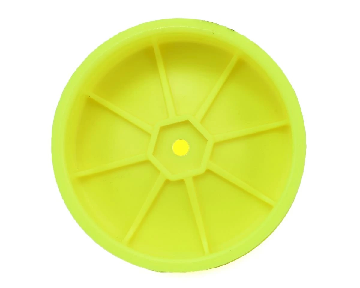 Schumacher 12mm 1/10 2WD Buggy Front Hex Wheels are compatible with 1/10 scale 2WD buggies that use a 12mm hex. These “Slim” wheels measure in at 20mm wide and are suitable for the popular Schumacher slim tires such as Low Profile Cut Staggers and the original Staggers. No more cutting down of Medium wheels and they’re pre-vented with two holes! Package includes ten yellow wheels.