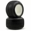 Schumacher Mezzo 1/10 Buggy Rear Tires feature a completely redesigned carcass, with development focused on the thickness of the profile to support the pin and improve the life span. The Mezzo has a varied pin type across the tire, enabling it to be more suitable to a wider variety of track conditions, including long and short pile astro. The pin type gives improved side traction whilst maintaining forward traction. Also, the Mezzo lasts longer and provides great bump handling thanks to the taller sidewall profile.