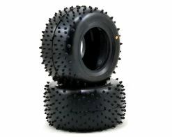 This is a set of two Schumacher “Mini Spike” 2.2 1/10 Truck Rear Tires, in yellow compound.