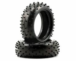 This is a set of two Schumacher “Mini Spike 2” 2.2 1/10 4WD Buggy Front Tires. The Schumacher Mini Spike 2 tire is the control tire used for a majority of races in the UK, making it an excellent choice for a variety of outdoor track conditions.