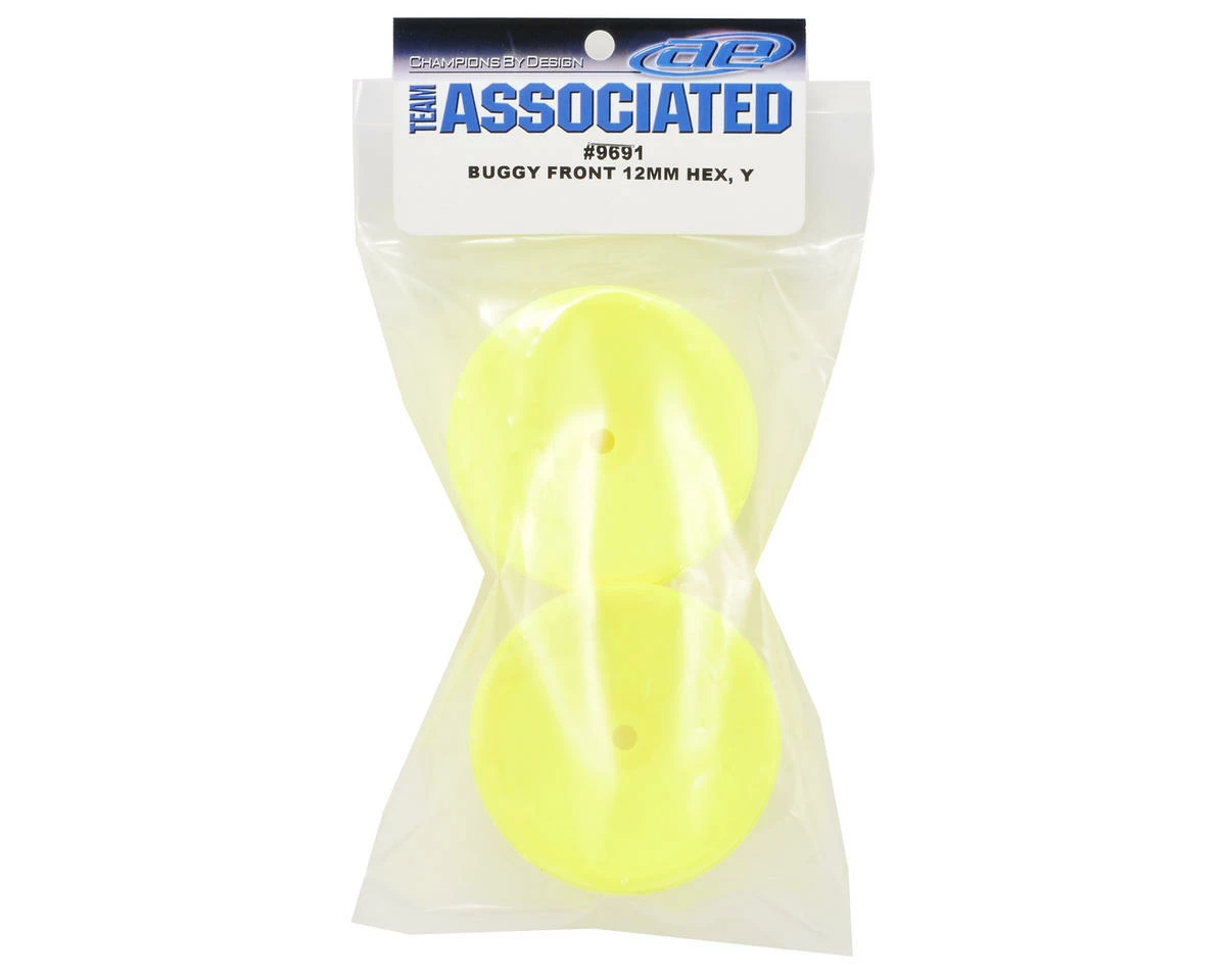 This is a set of two optional Team Associated 2.2 1/10 buggy front wheels with a 12mm hex, and are intended for use with the Associated B4 and B4.1 when equipped with a 12mm hex conversion.
