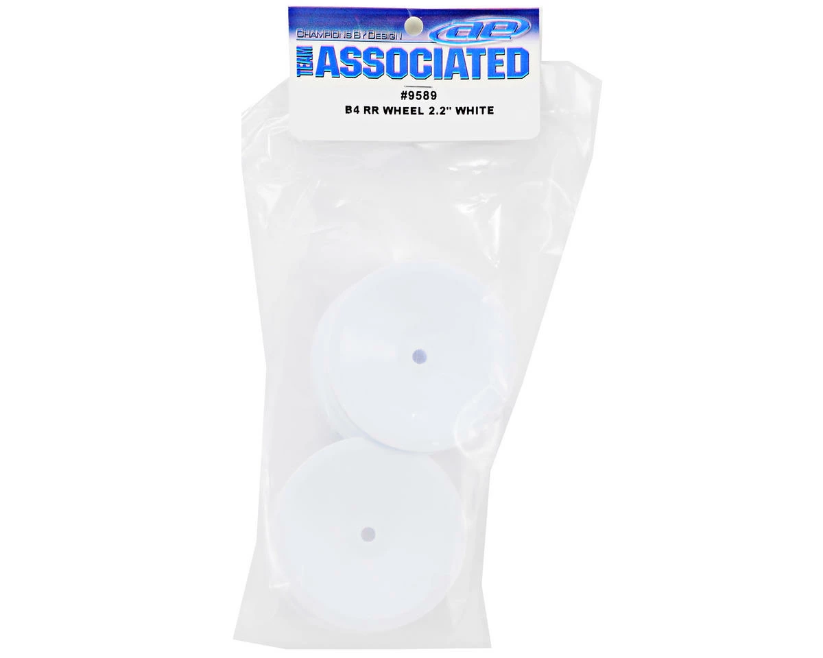This is a set of two replacement white rear wheels for the Team Associated RC10B4 Stealth buggy. These rims feature a white nylon construction which makes them tough, yet lightweight.