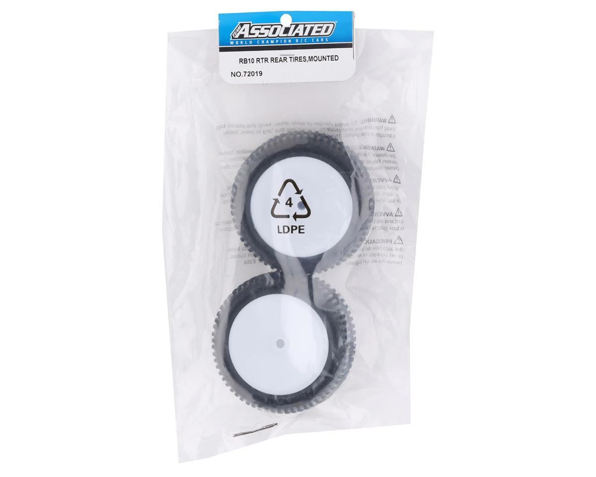 Team Associated RB10 RTR Rear Pre-Mounted Tires. These replacement rear tires are intended for the the rear of the Team Associated RB10. Package includes two pre-mounted tires.