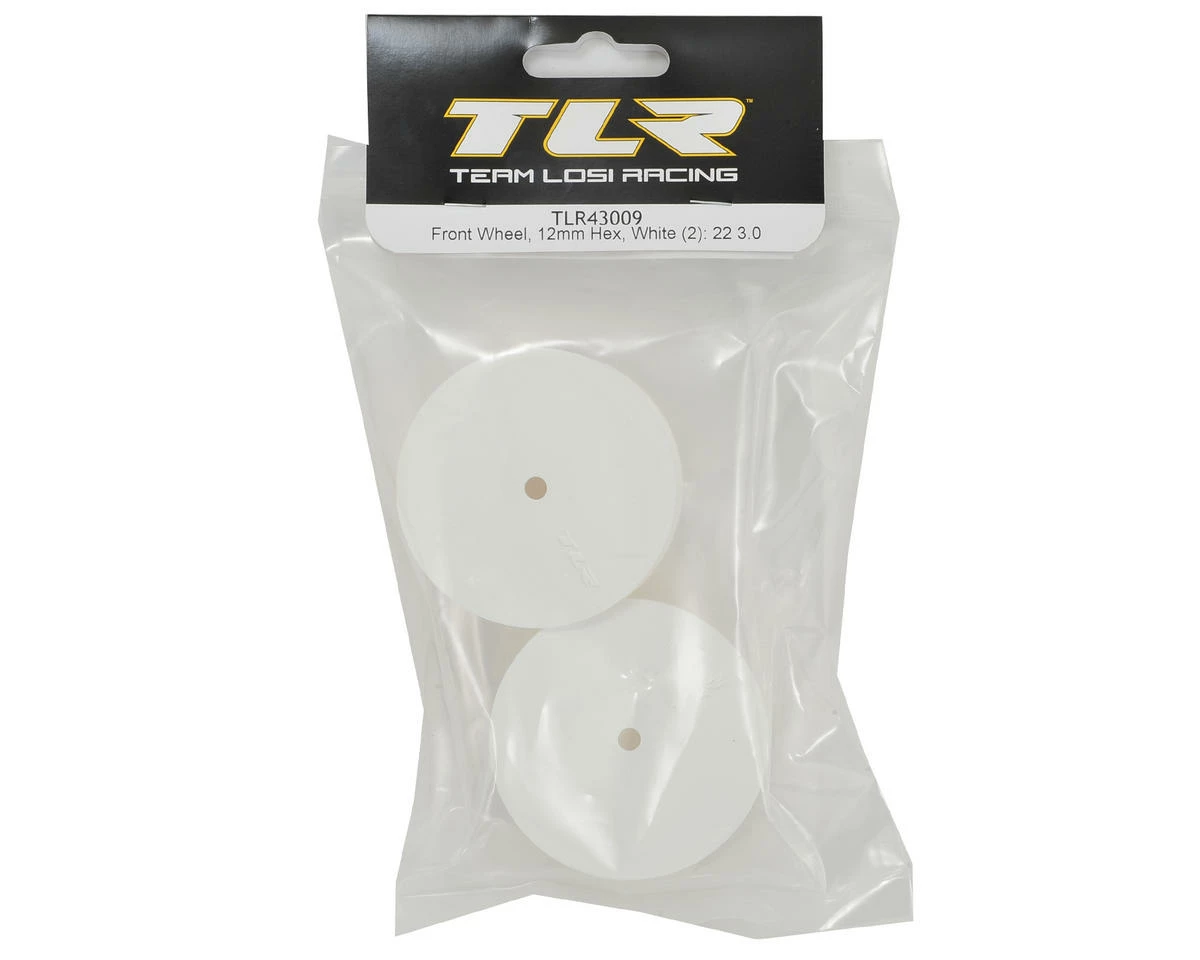 Team Losi Racing 22 3.0 Front 1/10 Buggy Wheels. These are the standard diameter front wheels, with a 12mm hex. Package includes two wheels.