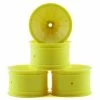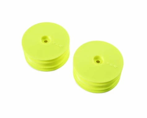 This is a replacement set of two Team Losi Racing 12mm Hex 4WD Yellow Front Buggy Wheels, intended for use with the TLR 22X-4 Race Kit.