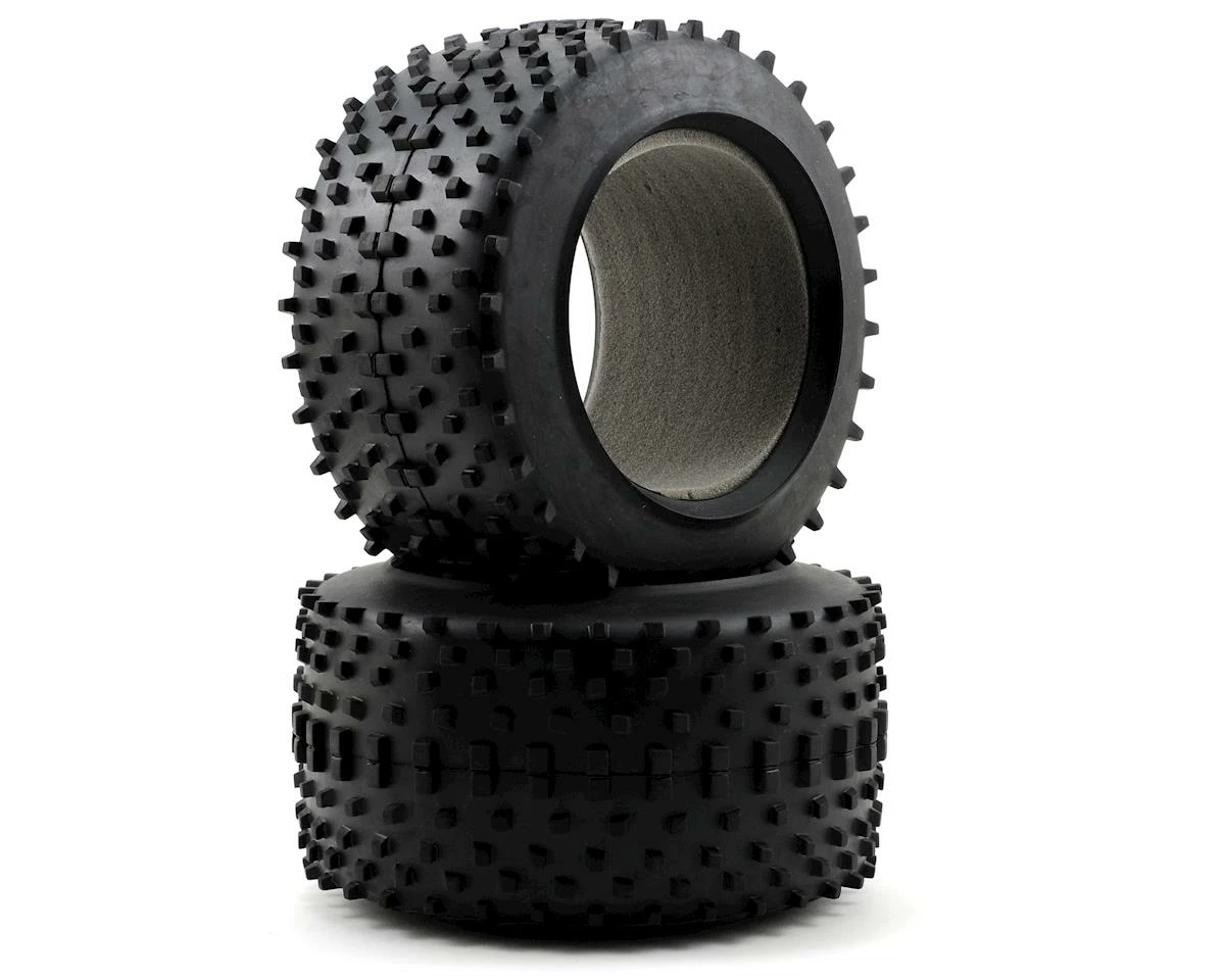 The original, proven, SportTraxx tire design is available in a low-profile size to fit standard 3.8” Revo wheels. They feature a super-soft rubber compound with a directional and asymmetrical tread pattern. The aggressive, multi-angled square spikes provide many sharp, gripping edges. There is a left and right tire in each package. Rotation direction changes depending on whether each tire is mounted in the front or the rear. High tech foam inserts complete the package for optimum traction and handling. The total weight savings when the stock tires are replaced with SportTraxx tires is 124 grams.