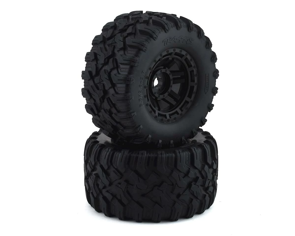 Traxxas Maxx 2.8″ All-Terrain Pre-Mounted Tires. Package includes two replacement “TSM rated” tires, pre-mounted on black 17mm splined wheels.