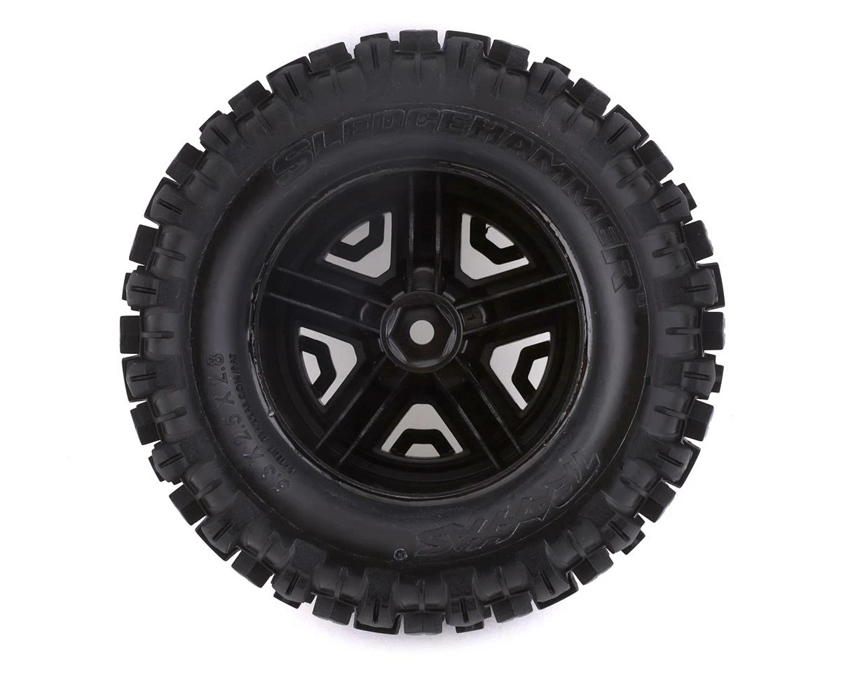 Traxxas Sledgehammer 2.8″ Pre-Mounted Tires. These tires are TSM rated and intended for the Traxxas Hoss 4×4. Package includes two pre-mounted tires.