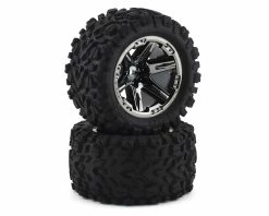 Traxxas Talon EXT 2.8″ Pre-Mounted Tires with RXT Wheels. These are the stock replacement wheel/tire setup that is included with the Traxxas Rustler 4×4. Package includes two TSM rated premounts.