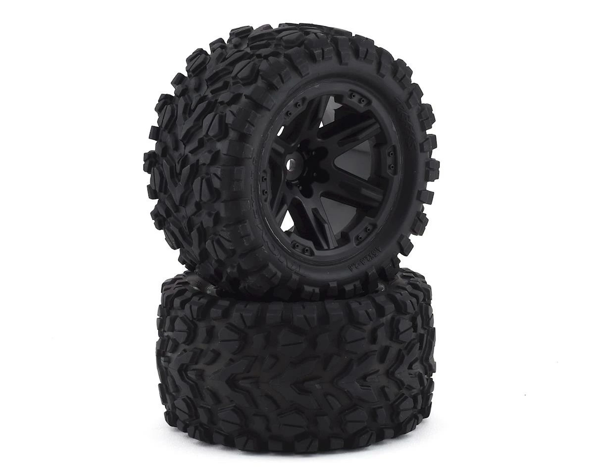 Traxxas Talon EXT 2.8″ Pre-Mounted Tires with RXT Wheels. These are the stock replacement wheel/tire setup that is included with the Traxxas Rustler 4×4. Package includes two TSM rated premounts.